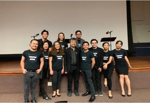 Theatre Woks (UC Irvine) pictured with David Henry Hwang for his visit and lecture at the University of California, Irvine, on November 14, 2019. Directed by Lecturer Ricardo Rocha, scenes from the playwright’s repertoire were performed for a full house at the Crystal Cove Auditorium.